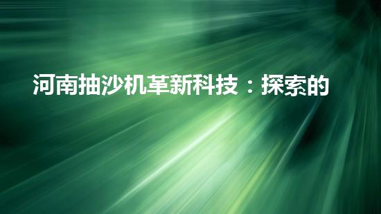 河南抽沙機革新科技:探索的未來?